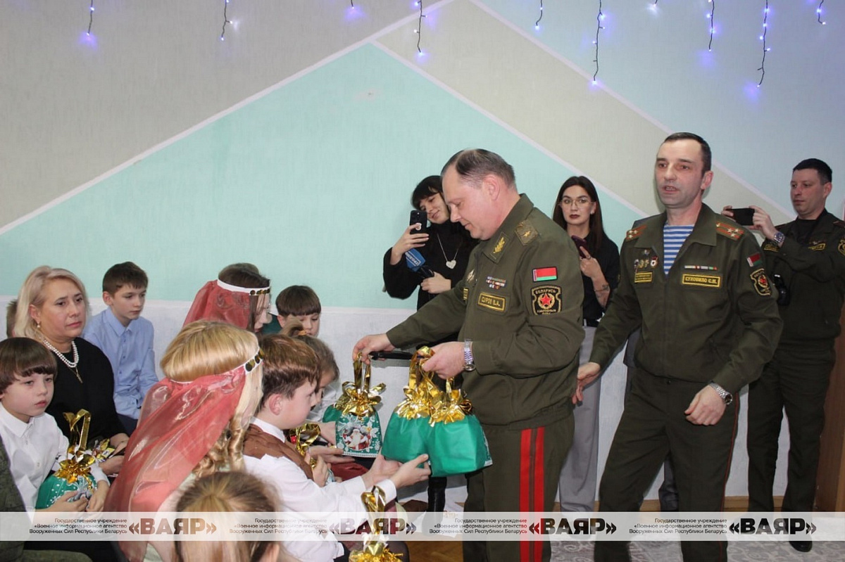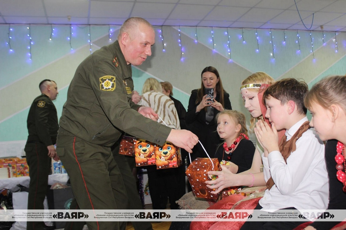 Военнослужащие вручили ребятам сладкие подарки, а директору центра — денежный сертификат для приобретения необходимых детям материальных средств. На празднике у воспитанников социально-педагогического центра в тот день также побывали и вручили подарки военный комиссар Гродненской области полковник Игорь Ходаровский и представители офицерского собрания комиссариата, офицер военного комиссариата города Гродно и Гродненского района подполковник Георгий Богомолов и председатель первичной профсоюзной организации комиссариата Наталья Балашко.