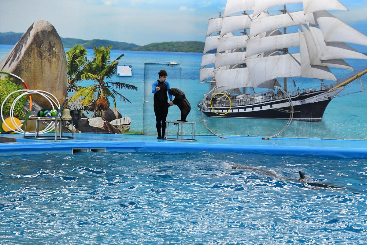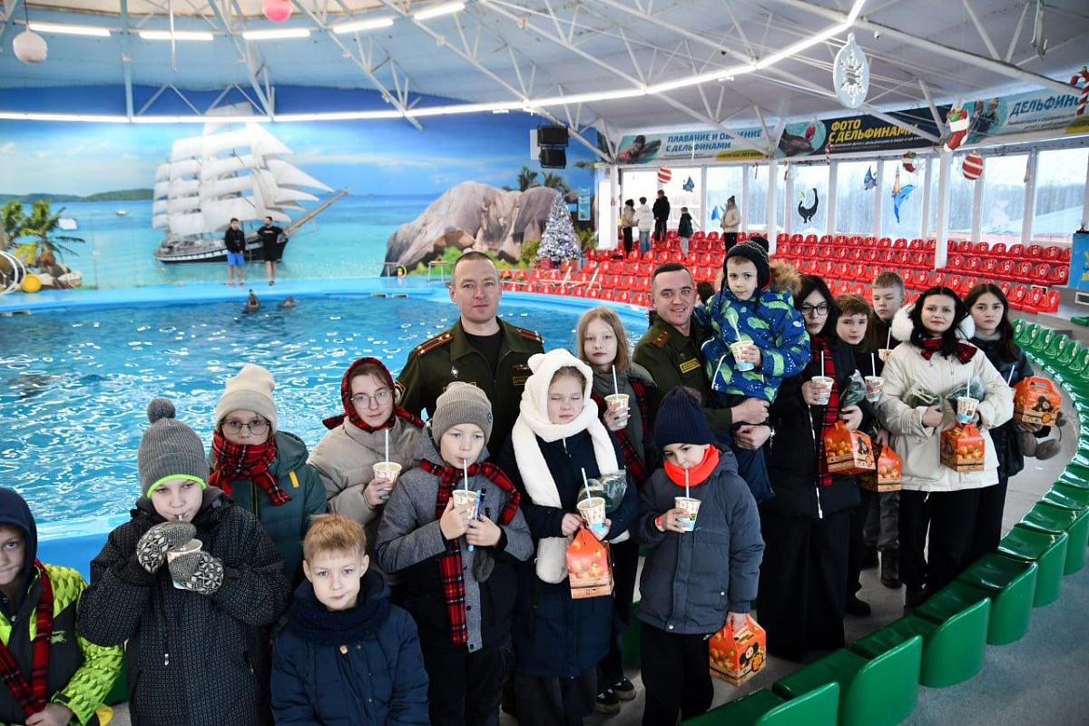 Военнослужащие 387‑го центра технического контроля и обеспечения защиты информации и 31-го навигационно-топографического центра в рамках республиканской благотворительной акции "Наши дети" организовали для Минского районного социально-педагогического центра посещение Новогоднего шоу в Минском дельфинарии.