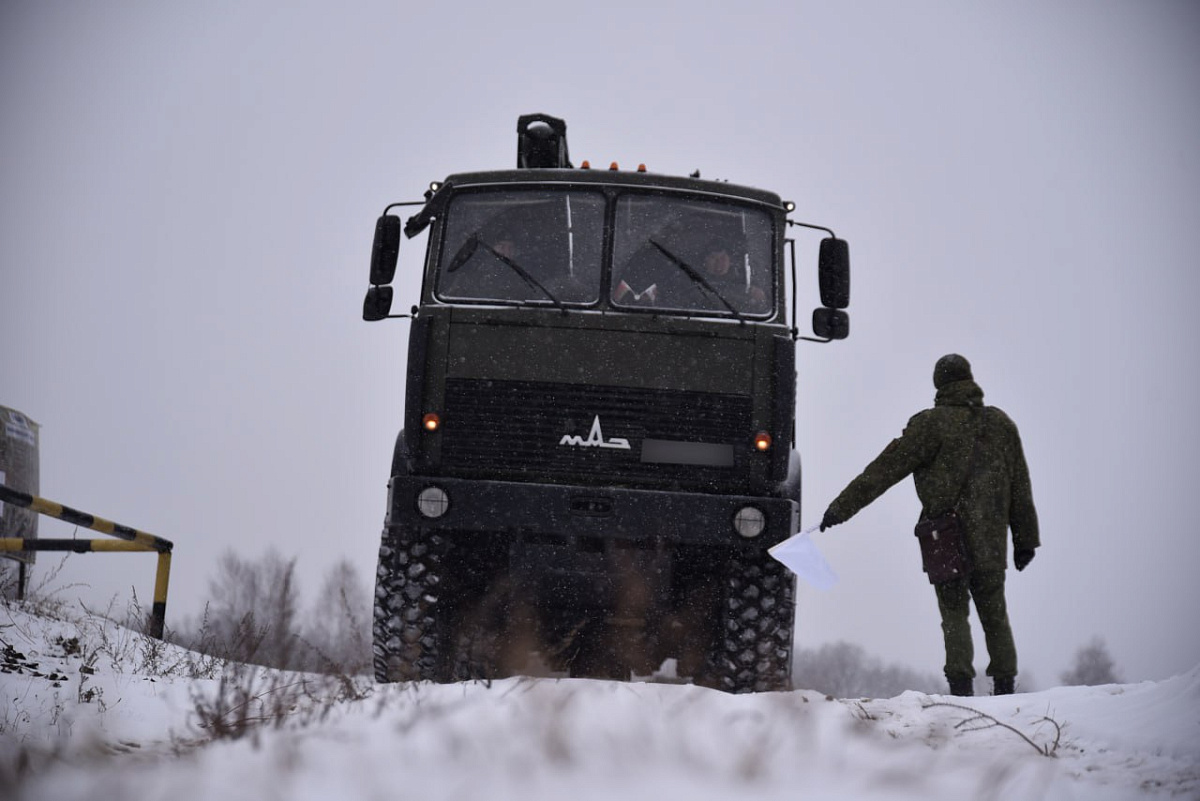 Военнослужащие прошли маршрут протяженностью около пяти километров, в ходе которого преодолевали препятствия: участок маневрирования и заграждений, противотанковый ров с проходом, макет колейного моста, прямой ограниченный проход, места остановки на горизонтальной поверхности и на подъеме, проход между столбами на спуске.