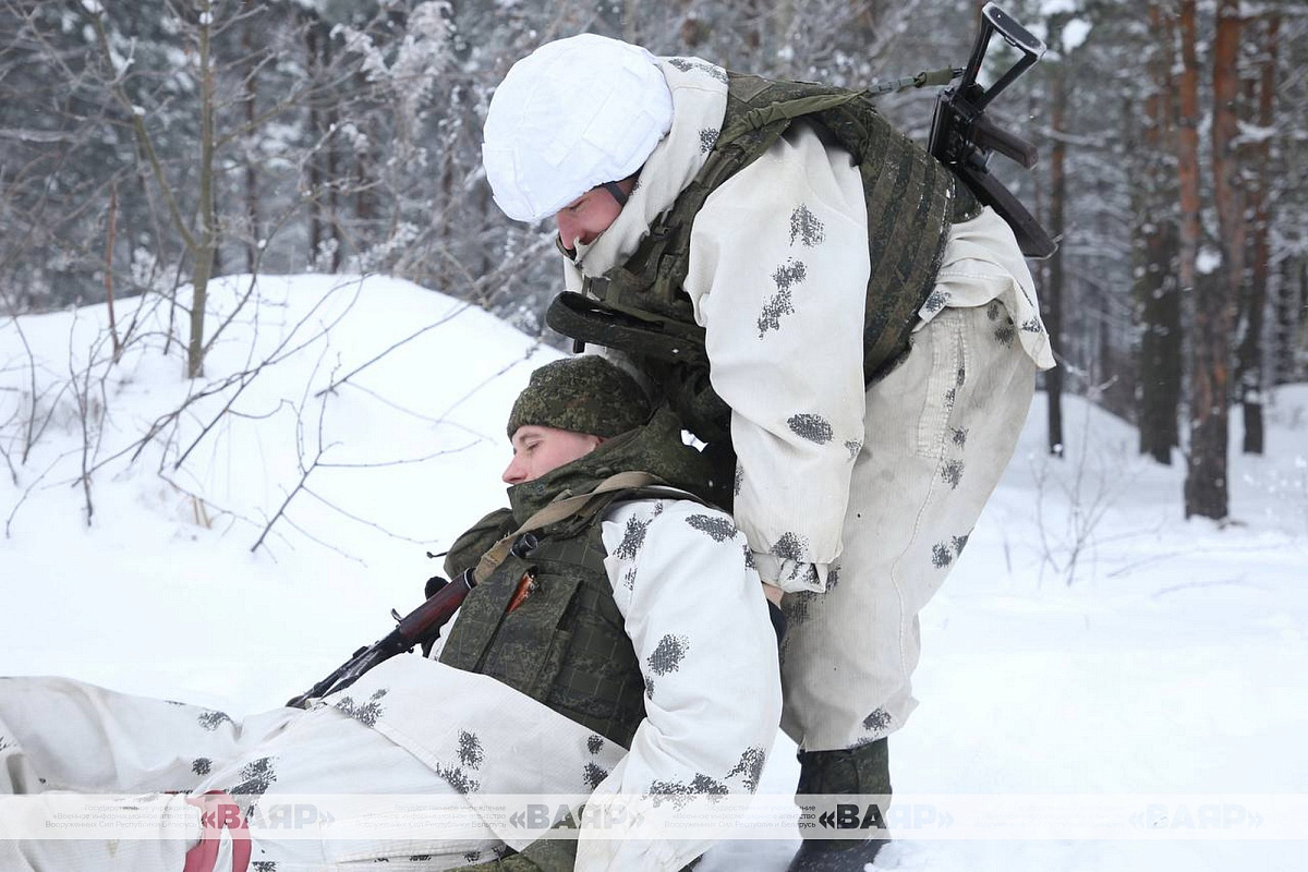 В ходе занятий военнослужащие также отрабатывают вопросы тактической медицины, снаряжения и разряжания магазина, несения службы на КПП.