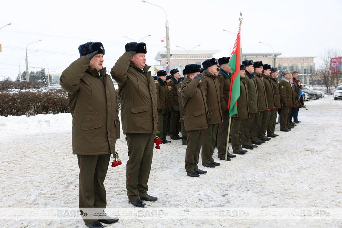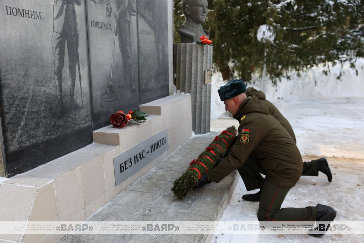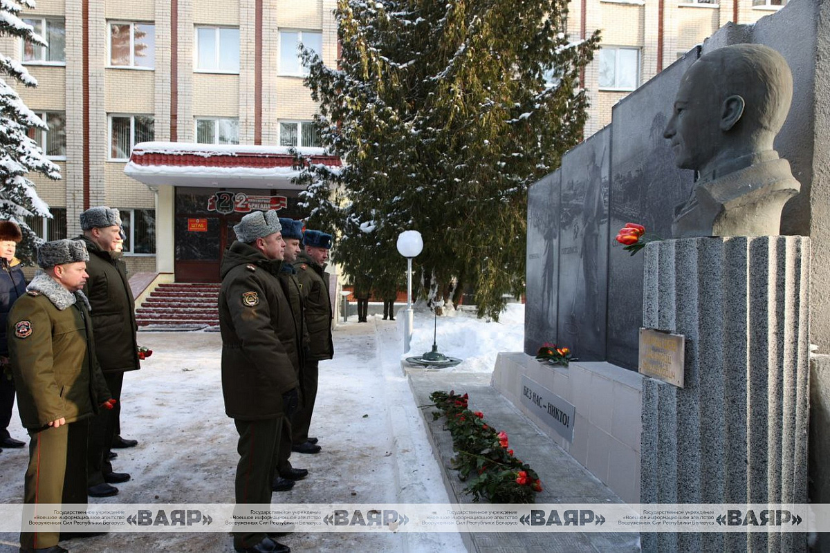 Также на территории 2-й инженерной бригады военнослужащие и курсанты военно-технического факультета в БНТУ возложили цветы к памятнику Герою Советского Союза генерал-лейтенанту Карбышеву Д.М.