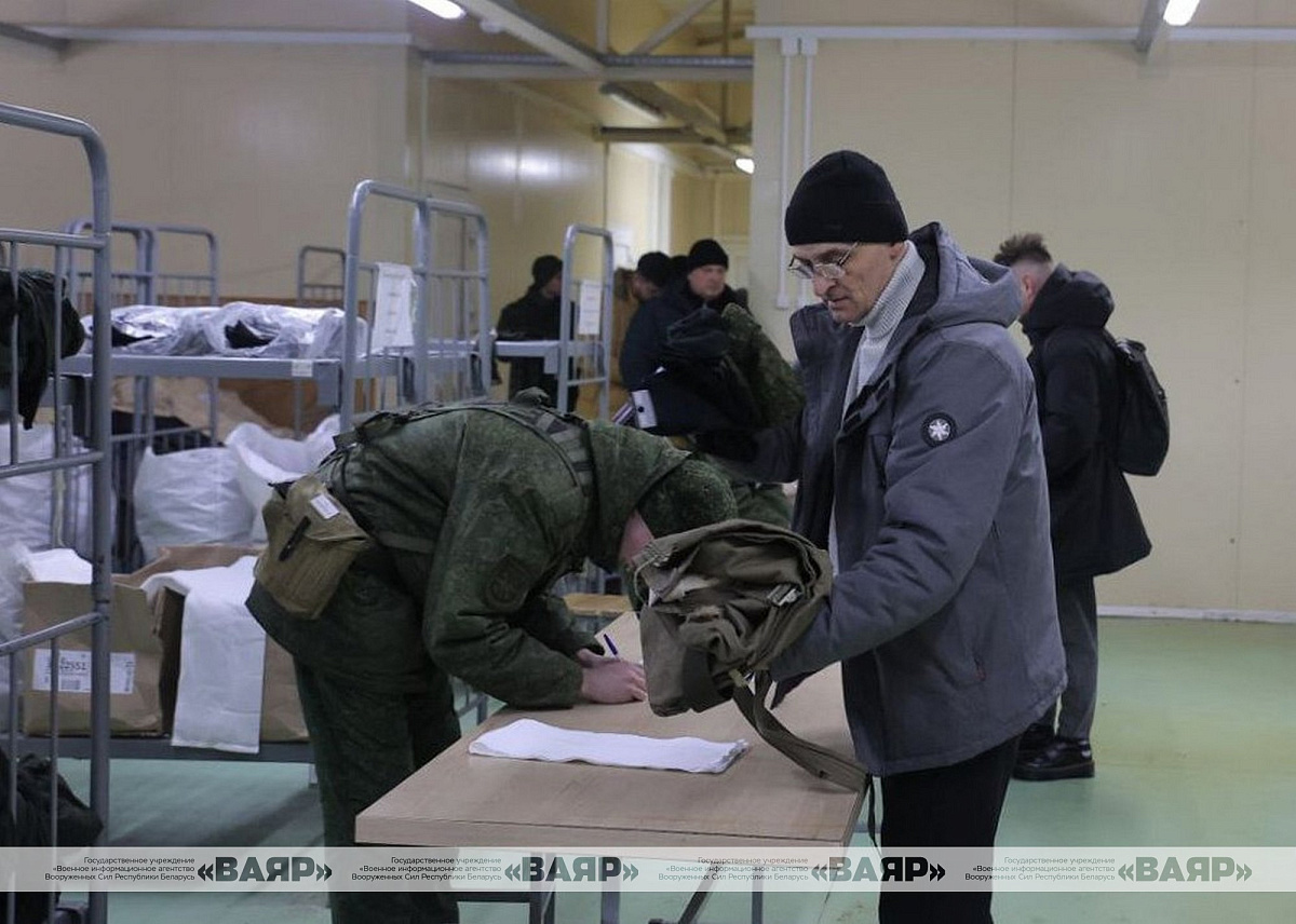 Военнообязанные получают обмундирование и снаряжение, после чего начнут переподготовку по военно-учетным специальностям.