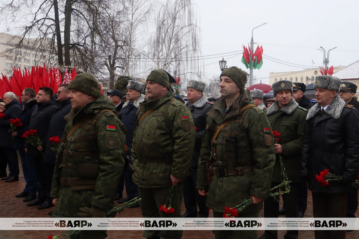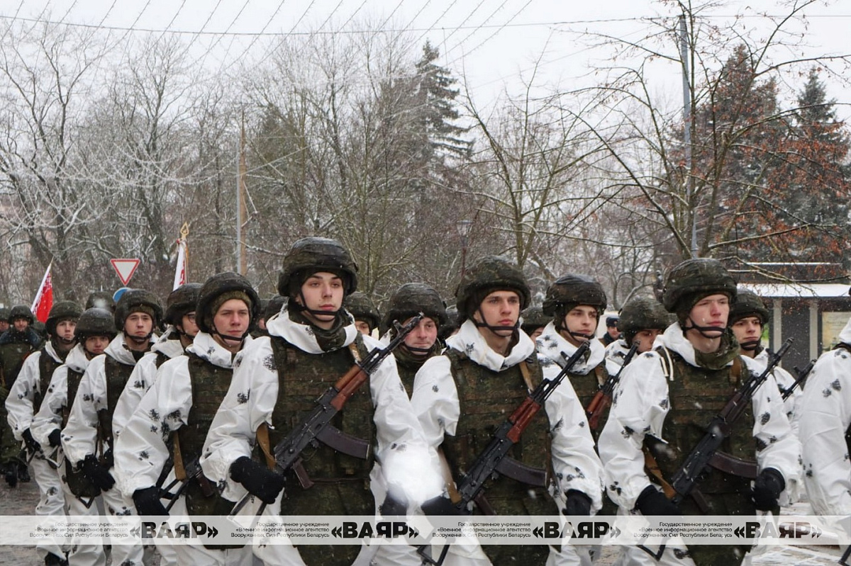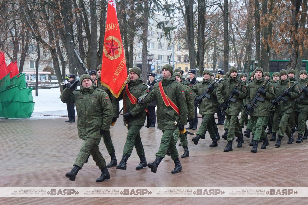 Коробки воинских подразделений с Боевыми Знаменами во главе под музыку военного оркестра продефилировали от Советской площади до городского парка имени Жилибера. Там состоялось возложение венков и цветов к Братской могиле советских воинов-освободителей, партизан и подпольщиков. Память погибших защитников Отечества собравшиеся почтили минутой молчания. Затем войска гарнизона прошли торжественным маршем, держа равнение на мемориал.