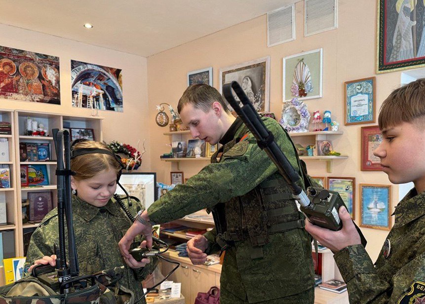 Военнослужащие 377-го гвардейского зенитного ракетного полка провели для воспитанников клуба «Ракетчик» занятие и показали экипировку и снаряжение военных связистов.