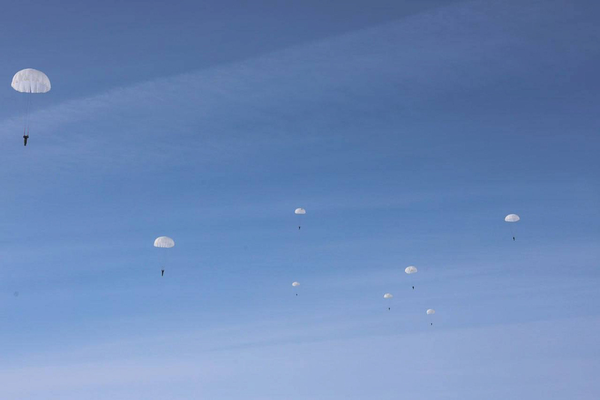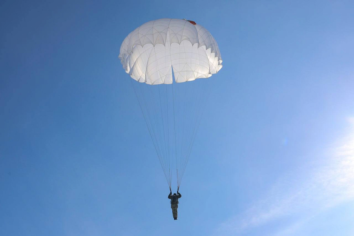 Военнослужащие 103-й Витебской отдельной гвардейской воздушно-десантной бригады совершили прыжки с парашютом.