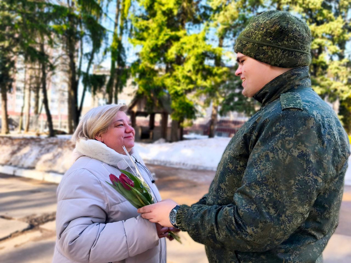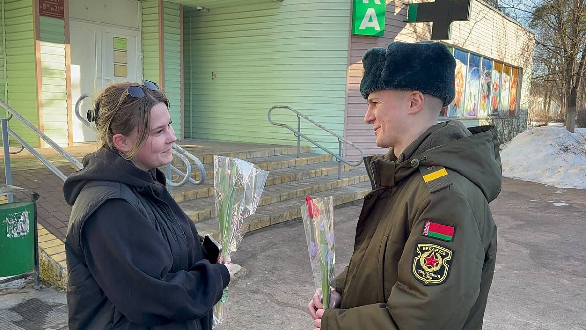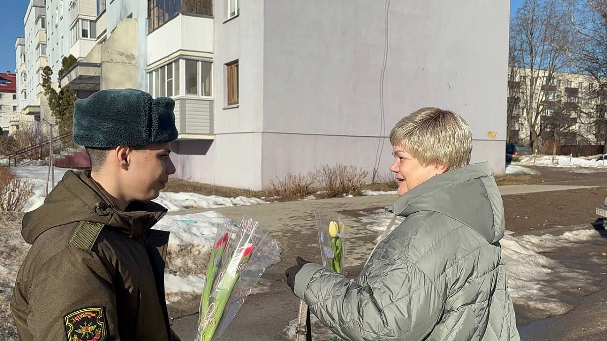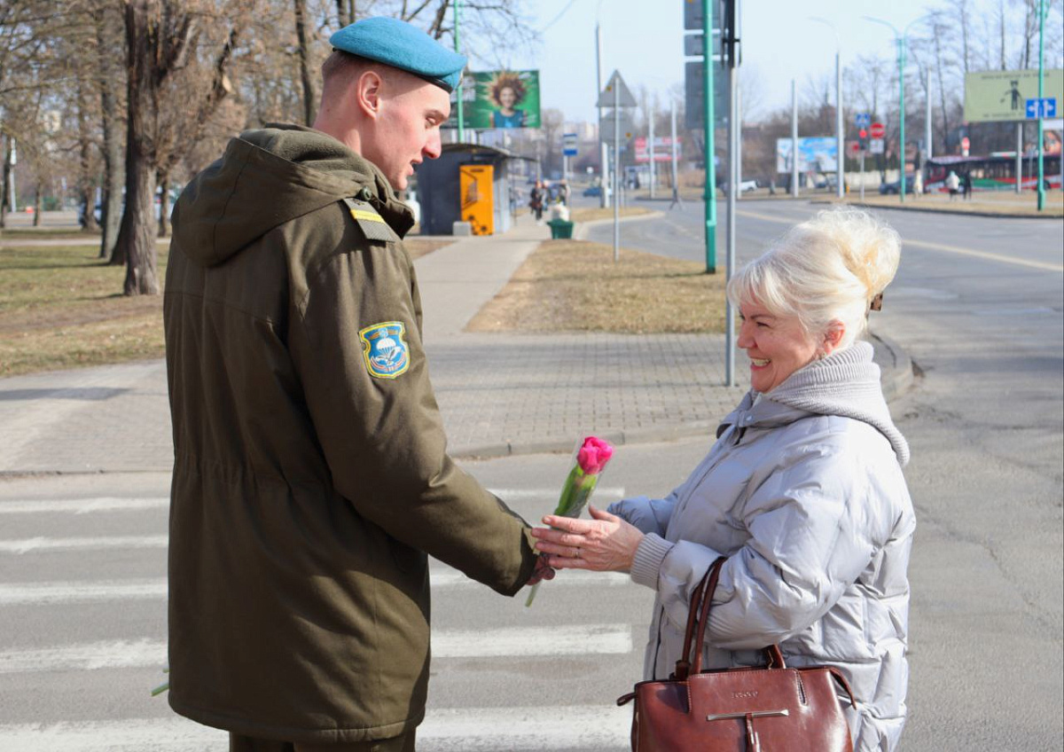 Военнослужащие дарили представительницам прекрасного пола цветы на улицах белорусские городов, приглашали матерей солдат в воинские части и соединения, приезжали к ним по месту работы и домой.