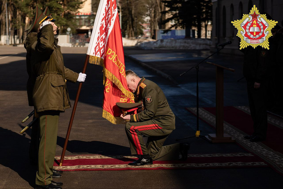 Сегодня состоялся торжественный ритуал прощания с Боевым Знаменем начальника Военной академии генерал-майора Андрея Горбатенко, который прошел с участием офицеров и курсантов учреждения образования.