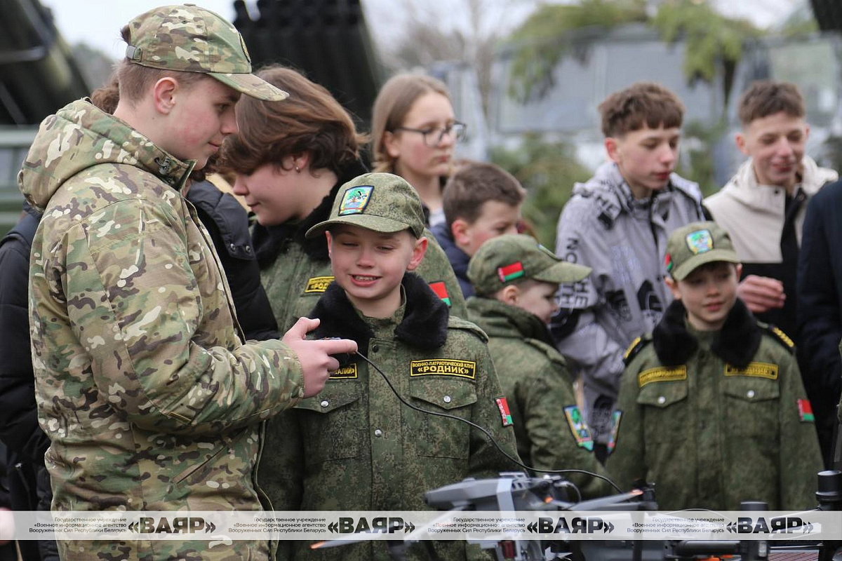 Военнослужащие подготовили для ребят выставку образцов вооружения и военной техники ракетных войск и артиллерии, различного стрелкового оружия, современной экипировки, а также беспилотных летательных аппаратов.