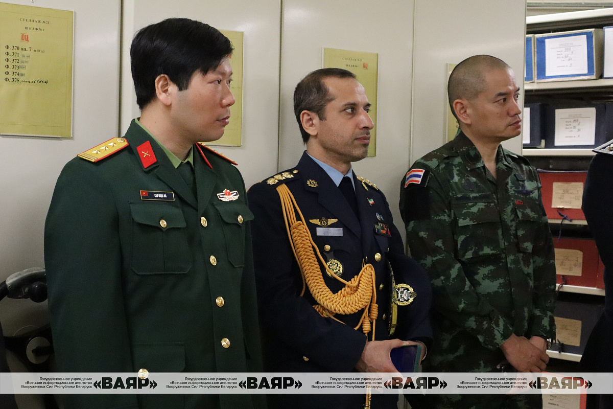 В Национальном архиве для военных атташе был организован показ нового документального фильма «Брестская крепость». Гостям также рассказали о деятельности партизанских формирований из разных стран в годы Великой Отечественной войны и представили документальные доказательства геноцида белорусского народа в период немецко-фашистской оккупации. Иностранные военные атташе высоко оценили уровень сохранности исторических материалов и уникальность представленных экспонатов.