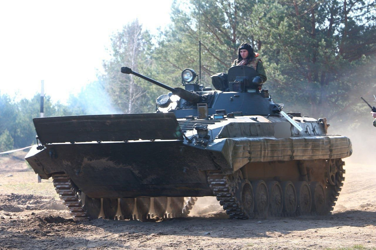 На полигоне 11-й отдельной гвардейской механизированной бригады проходят занятия по вождению боевых машин.