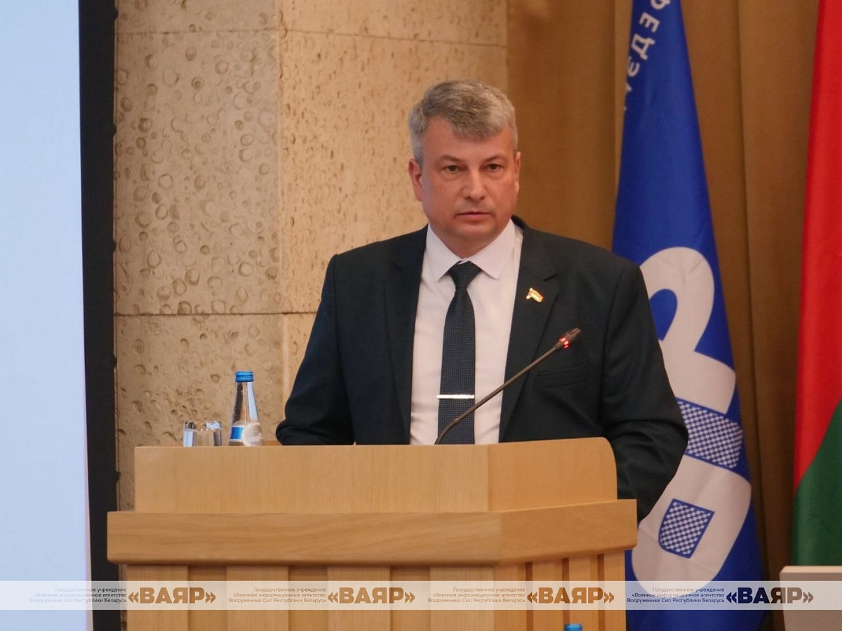 С докладом о результатах профсоюзной деятельности за прошлый год выступил председатель Профсоюзной организации Вооруженных Сил Республики Беларусь Олег Копыл.