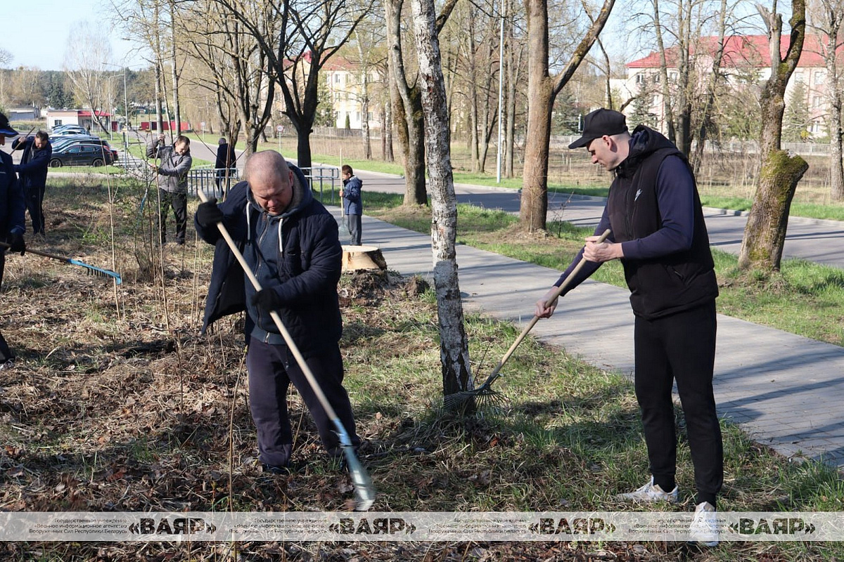 Участники субботника также занимаются благоустройством военных городков и прилегающей к ним территории, наводят порядок на рабочих местах. Медицинский персонал и ветераны 1134-го военного клинического медицинского центра накануне субботника приняли участие в республиканской акции по наведению порядка и обновлении белорусских лесов «Лес! Дабро! Парадак!», а сегодня занимаются озеленением и благоустройством территории учреждения. Военнослужащие гарнизона сегодня вносят свой посильный вклад в наведение порядка в городском лесопарке Пышки.