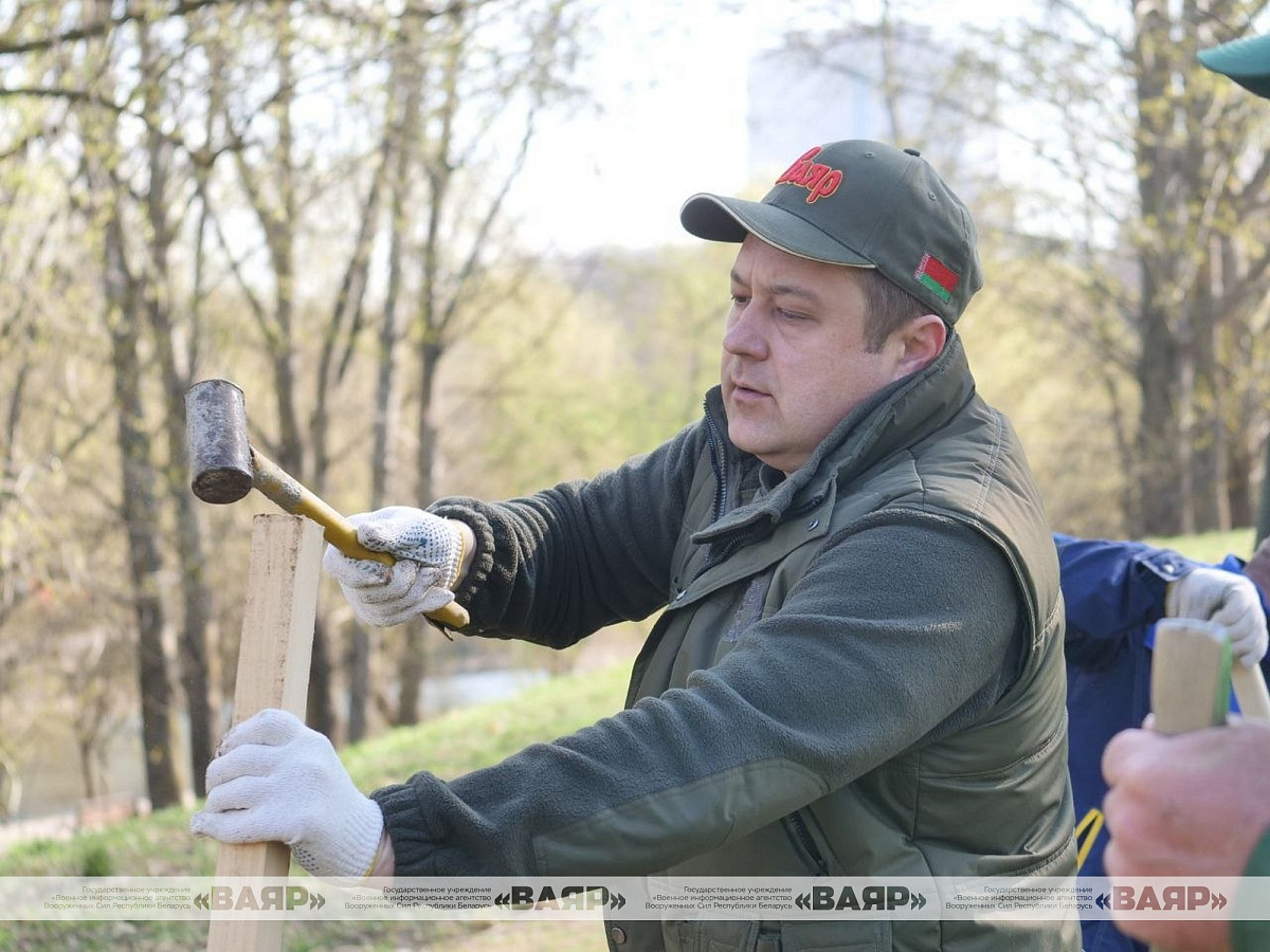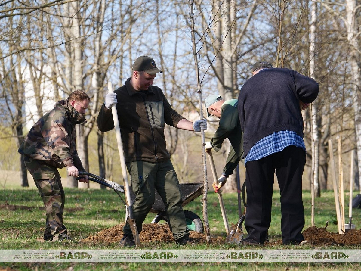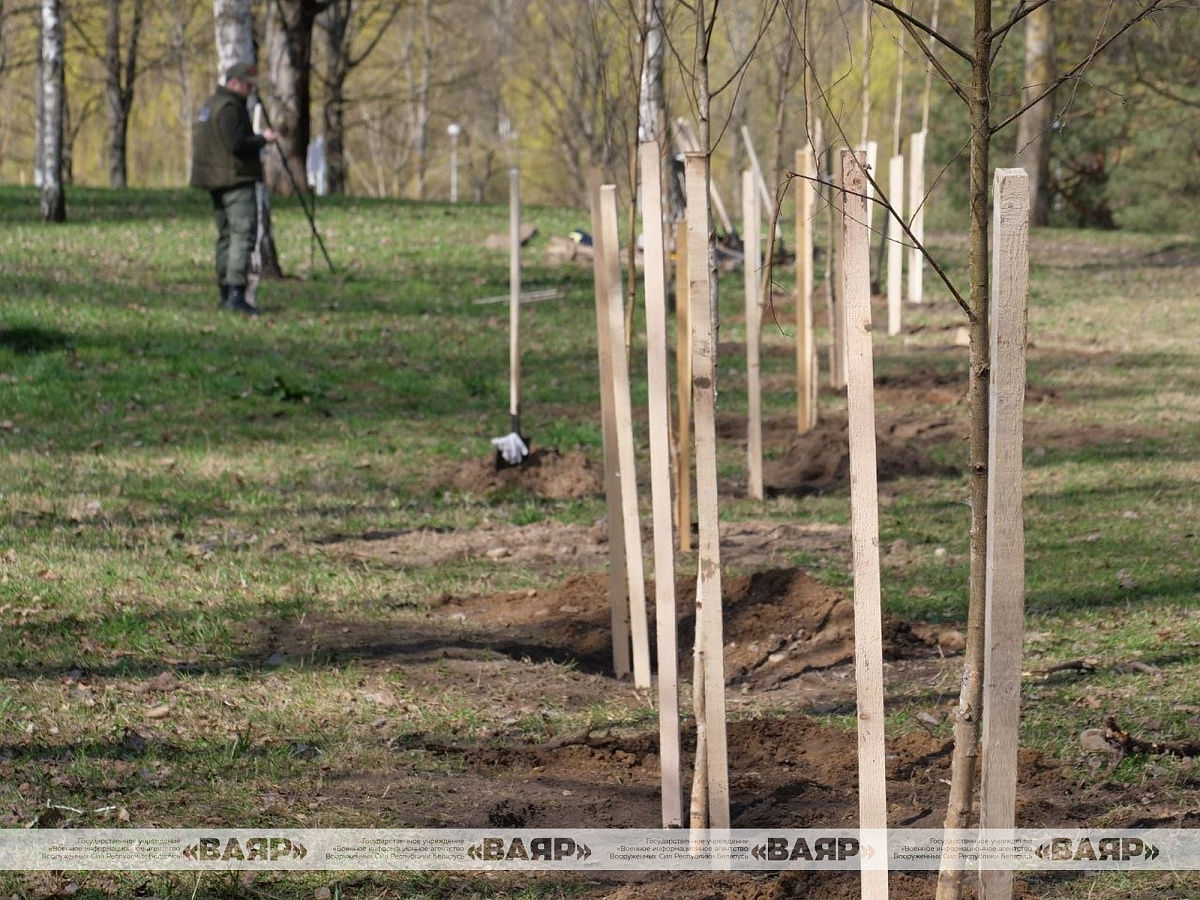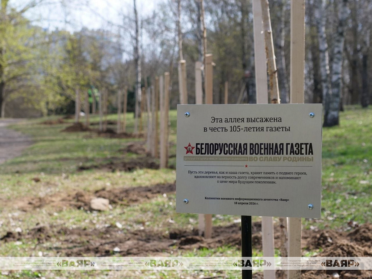 Сотрудники Военного информационного агентства «Ваяр» приняли участие в республиканском субботнике, высадив в столичном парке Павлова аллею из 20 берез, посвященную 105‑летию Белорусской военной газеты «Во славу Родины».
