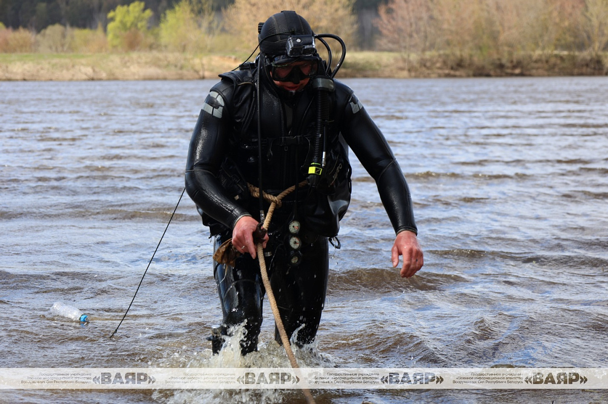 Перед наведением паромной переправы инженерную разведку местности и водной преграды провели специалисты разведывательно-водолазного подразделения.