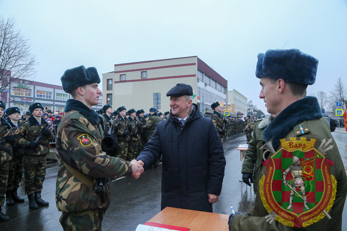 Поздравили военнослужащих с этим знаменательным днем Председатель Постоянной комиссии по национальной безопасности Палаты представителей Национального собрания Республики Беларусь Олег Белоконев, заместитель командующего силами спецопераций по воздушно-десантной подготовке – начальник отдела воздушно-десантной подготовки и обеспечения командования полковник Александр Барауля, ветераны Вооруженных Сил, родные и близкие солдат.