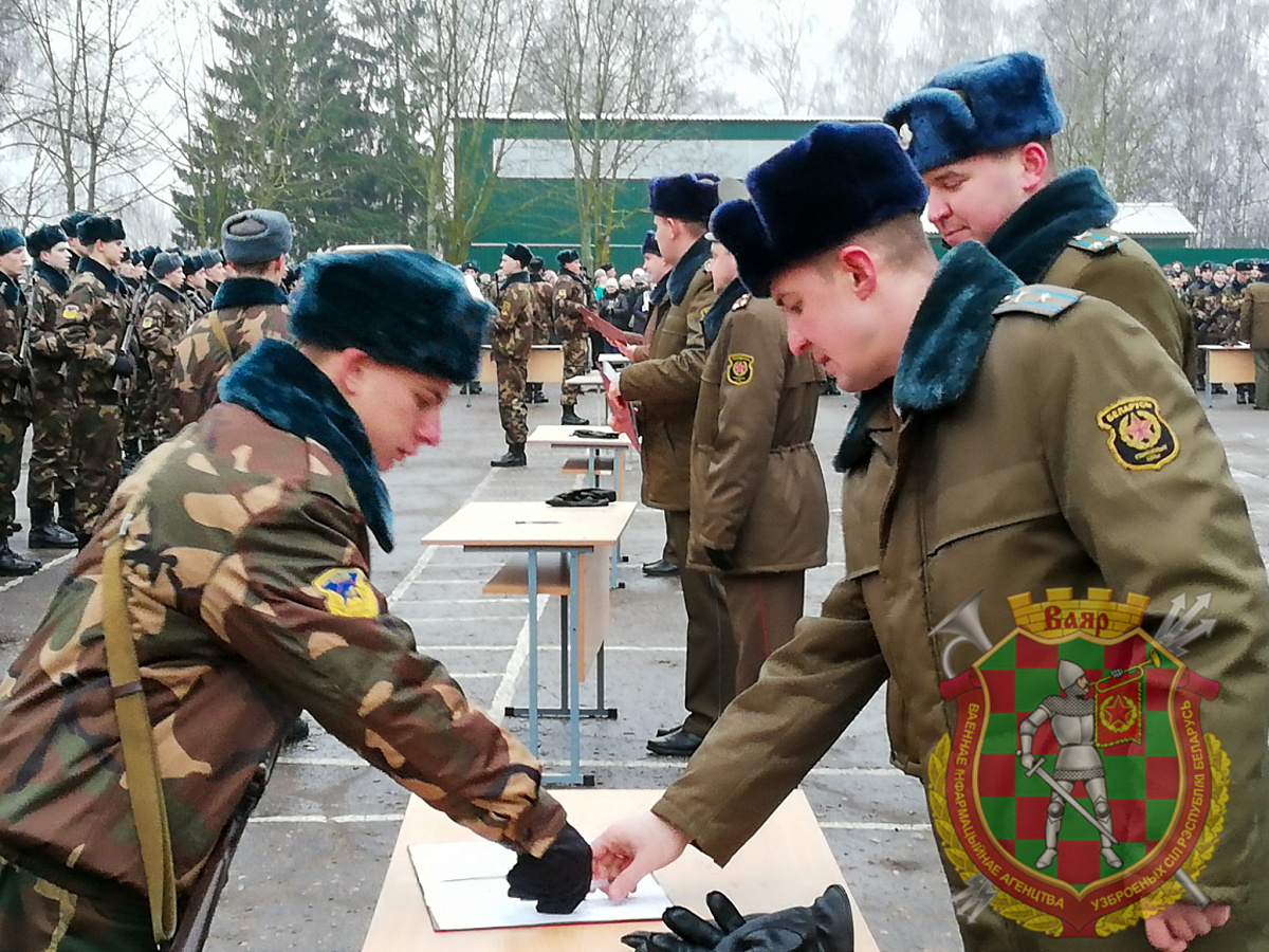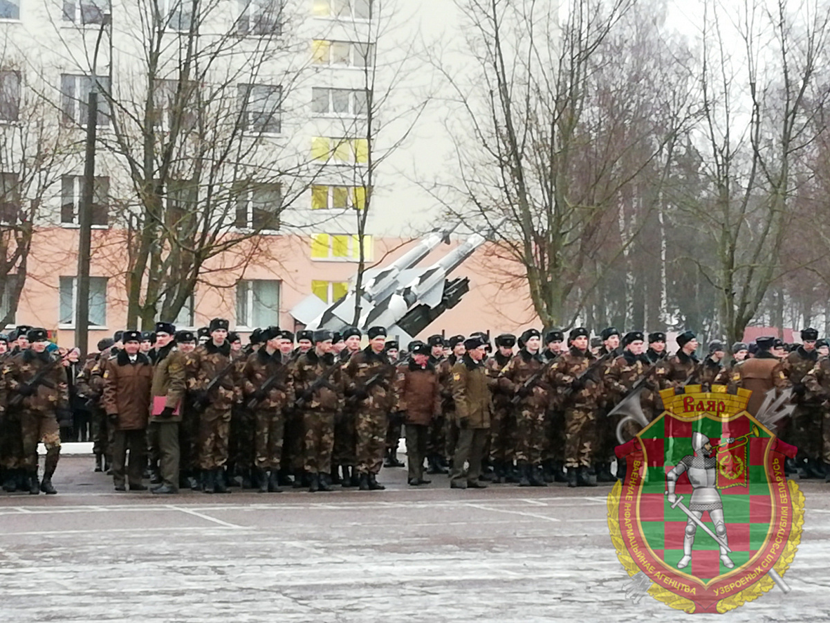 …Всего лишь месяц назад стоящие сегодня в строю юноши были призваны на службу в зенитные ракетные войска. И на протяжении этих первых нелегких недель новобранцы с усердием постигали азы армейской науки. В едином строю от подъема до отбоя. И в этот знаменательный для них день молодые люди перед лицом командования, почетных гостей, родных и близких с честью держали вступительный и, пожалуй, самый главный экзамен в школе жизни каждого мужчины. На плацу прославленной воинской части новоиспеченные солдаты присягнули на верность Родине и белорусскому народу.