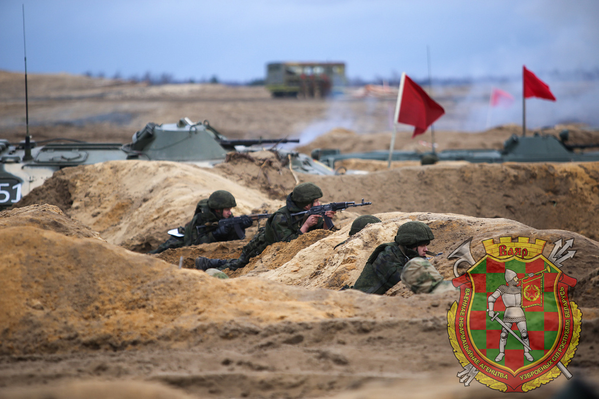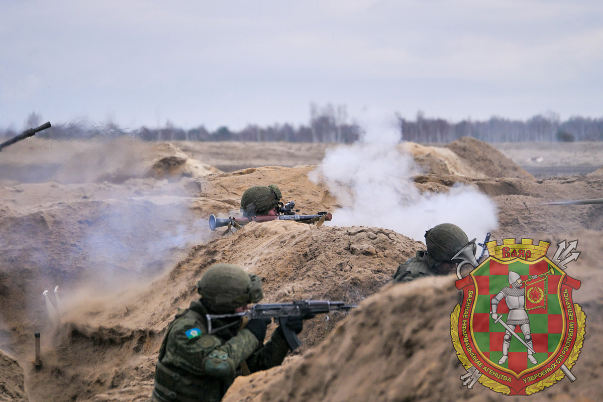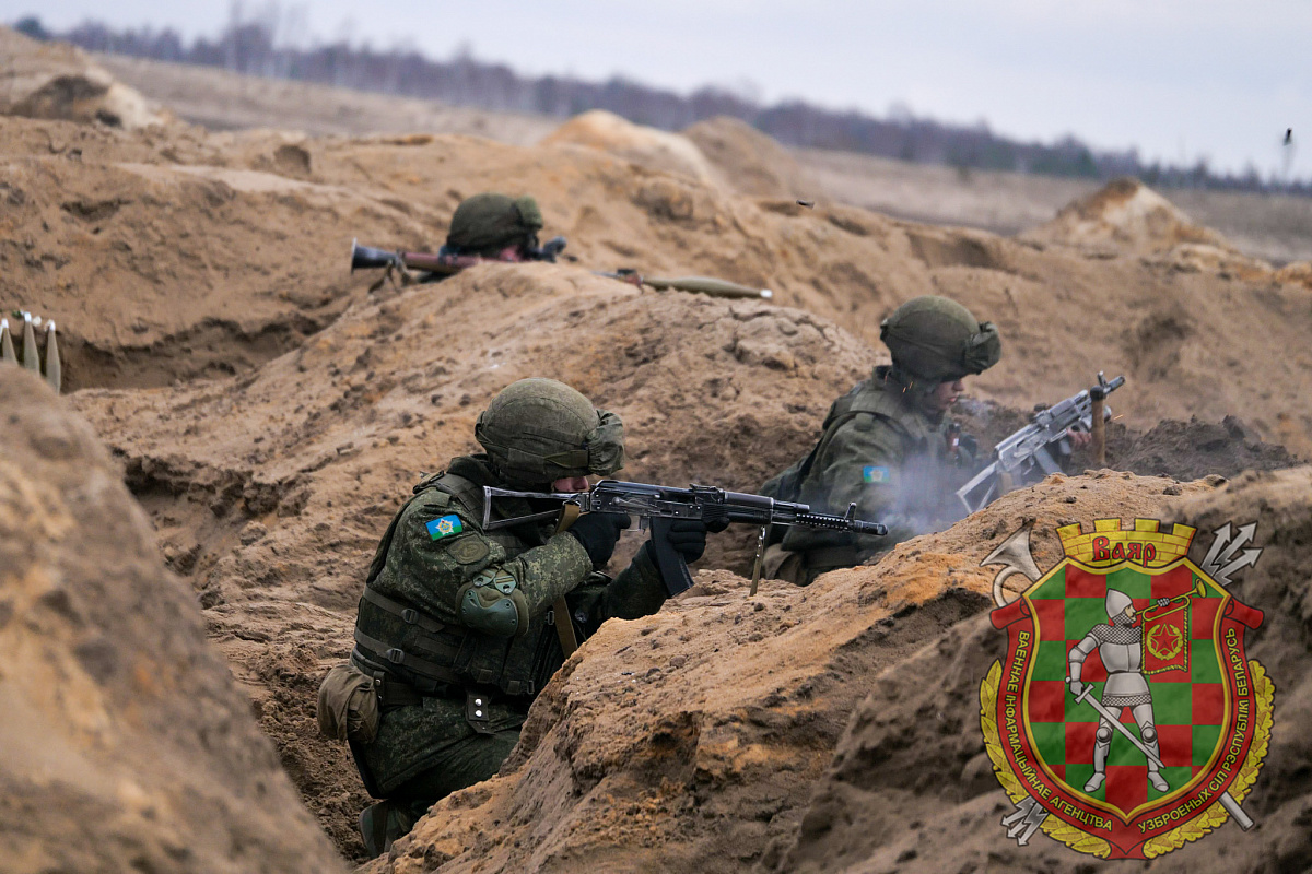 На полигоне «Брестский» в ходе учения «Союзная решимость-2022» десантно-штурмовой батальон 38-й отдельной гвардейской десантно-штурмовой бригады выполнял задачу по усилению охраны участка условной Государственной границы.