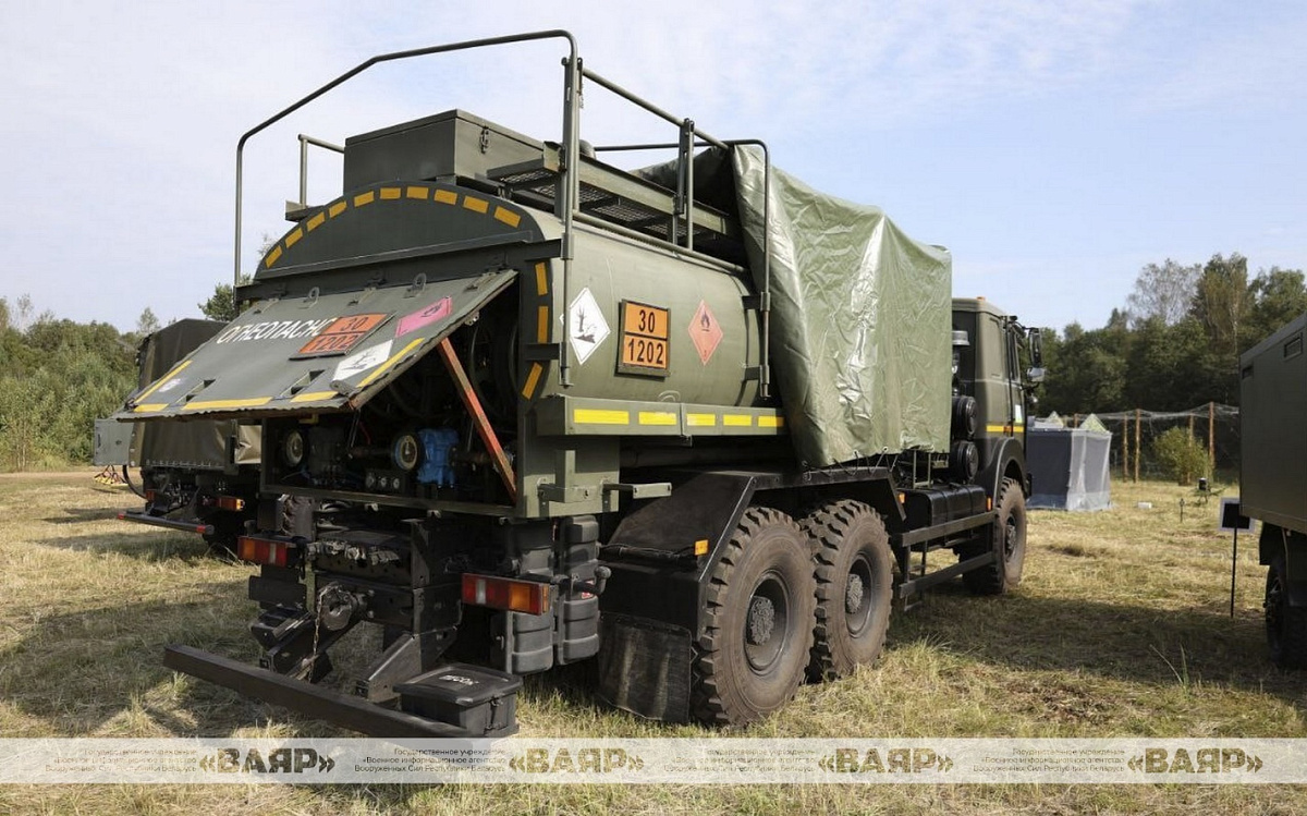 Также был показан вариант размещения подразделения материально-технического обеспечения. Данный элемент учения был направлен на проверку возможностей быстрого создания и развертывания полевых пунктов обеспечения в условиях сложной боевой обстановки.