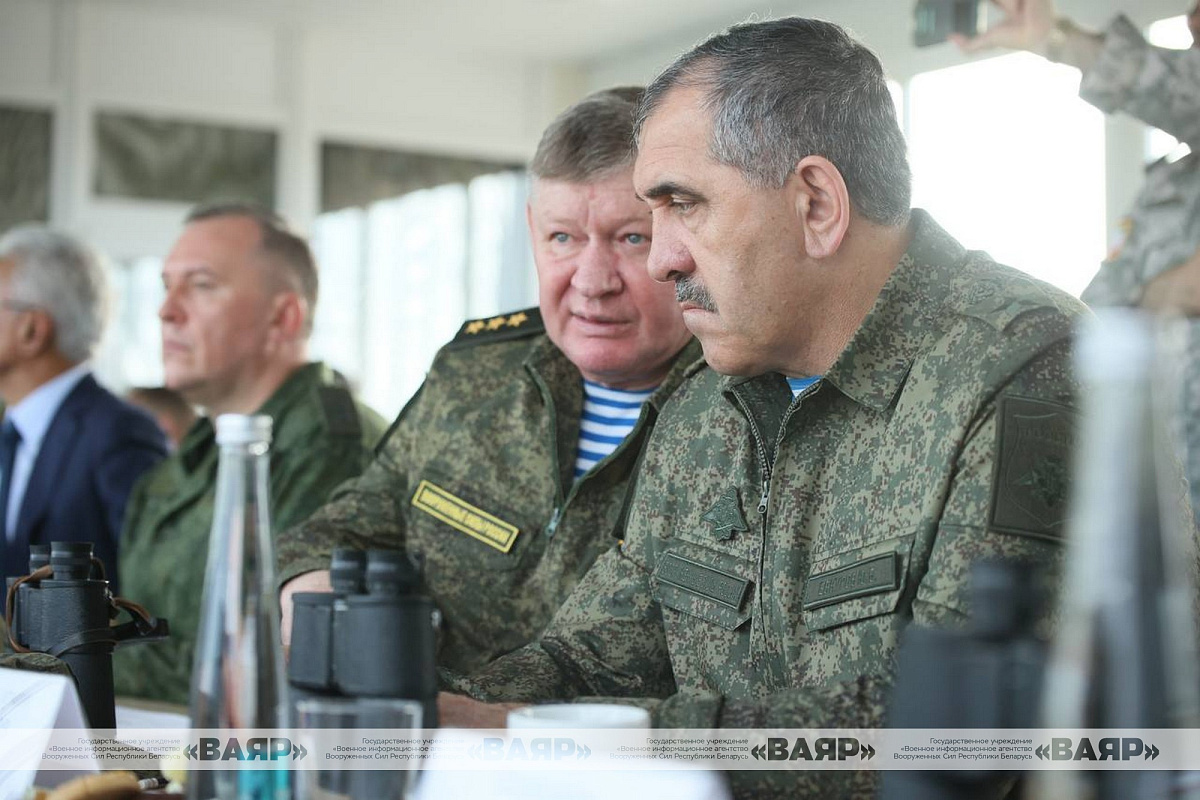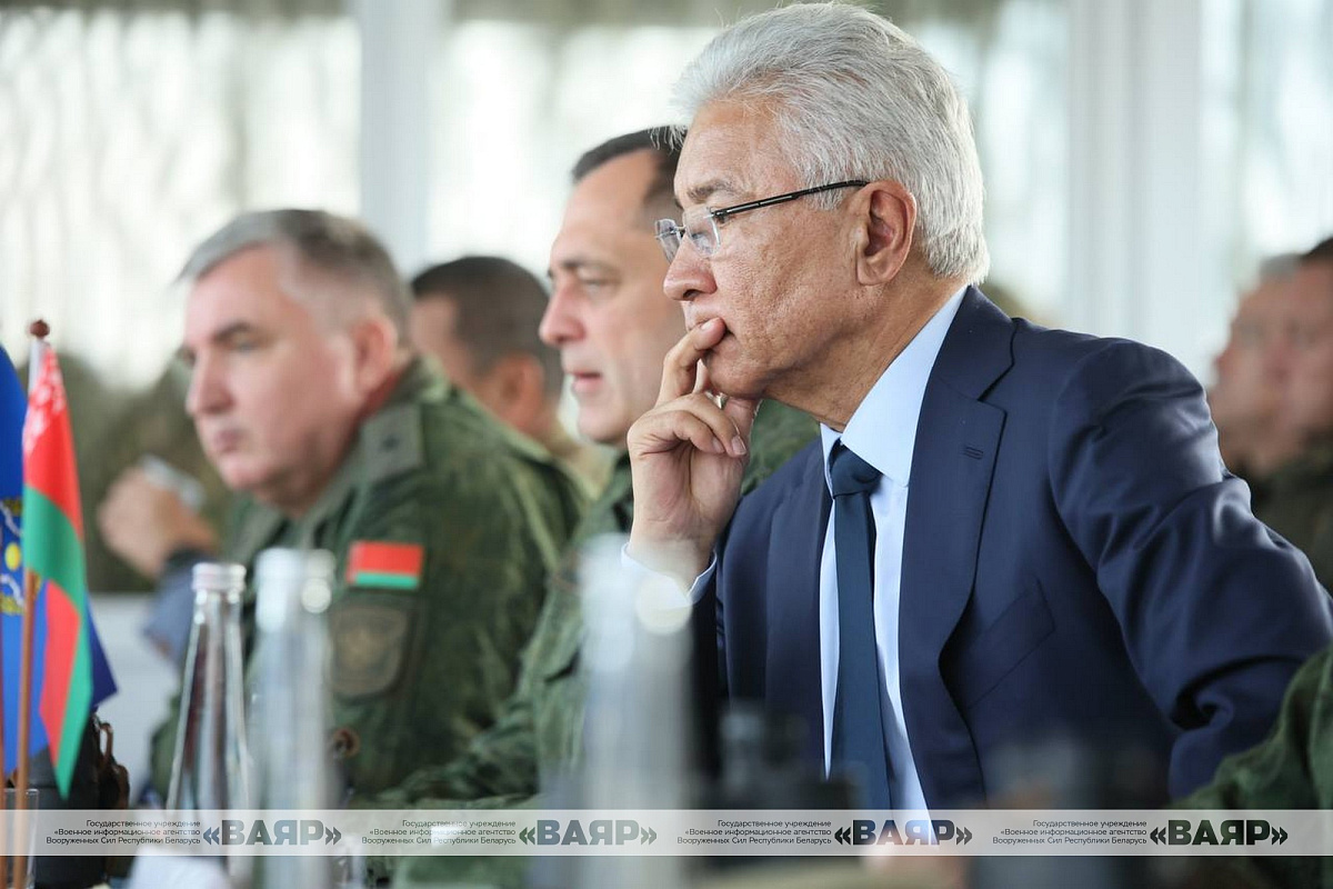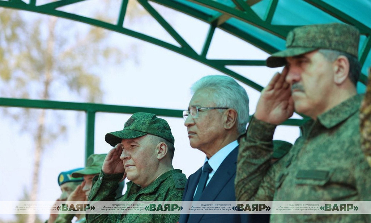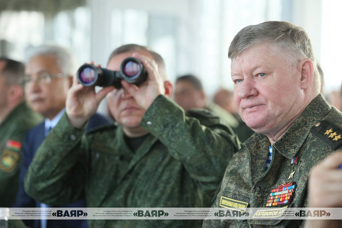 Министр обороны генерал-лейтенант Виктор Хренин, командующий силами специальных операций Вооруженных Сил генерал-майор Вадим Денисенко, Генеральный секретарь ОДКБ Имангали Тасмагамбетов, начальник Объединенного штаба ОДКБ генерал-полковник Андрей Сердюков, заместитель Министра обороны России генерал армии Юнус-Бек Евкуров, представители оборонных ведомств Беларуси, Казахстана, Кыргызстана, России и Таджикистана наблюдали за финальным розыгрышем учения с Коллективными силами оперативного реагирования «Взаимодействие-2025».